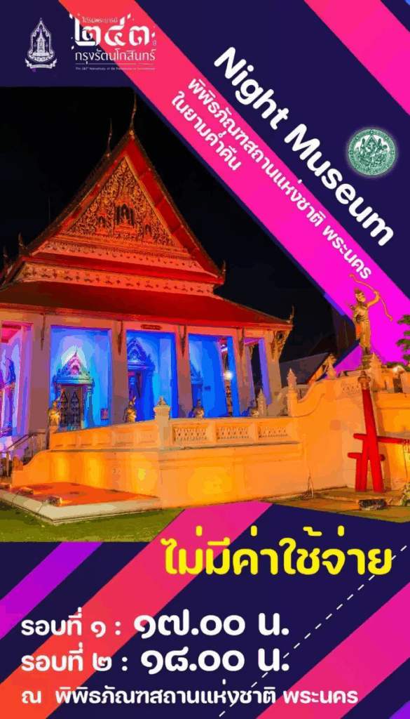 - ชมความงามยามราตรี “Night Museum” พิพิธภัณฑสถานแห่งชาติ พระนคร ยามค่ำคืน (ฟรี)